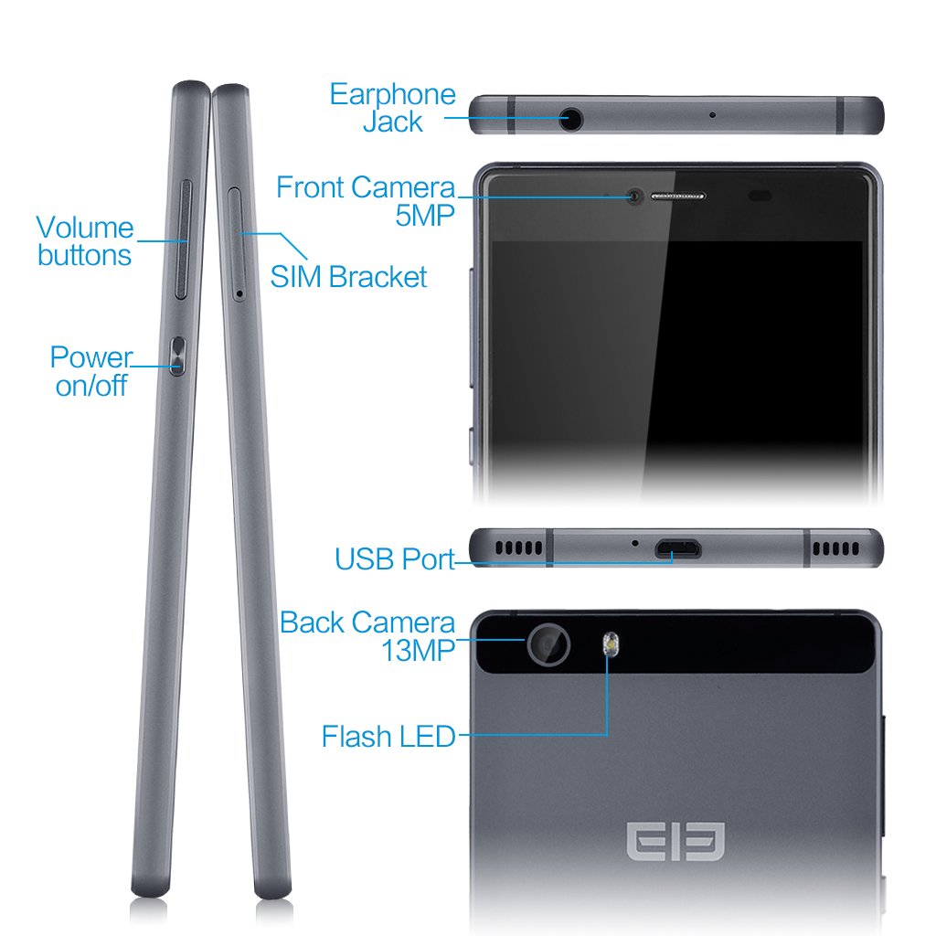 [Elephone Official Store] elephone M2 4G LTE Smartphone 5.5 Inch Android 5.1, 32GB ROM, 3GB RAM, Quad-Core 64-bit Dual SIM Gray
